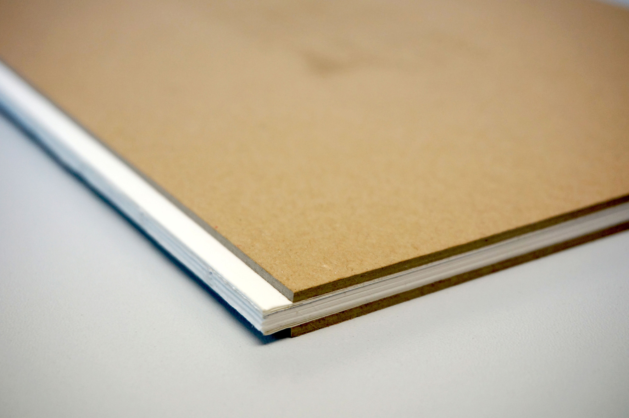Het omslag is gemaakt van onbewerkt natuurkarton en het binnenwerk op Cyclus Uncoated.
