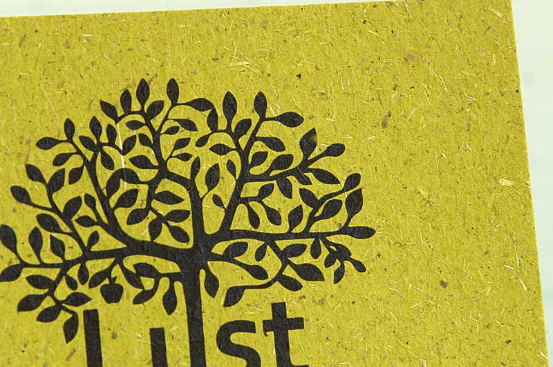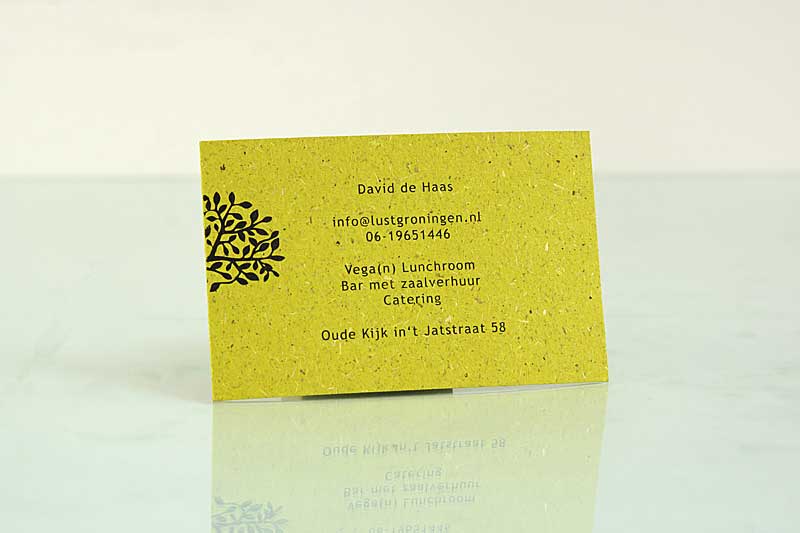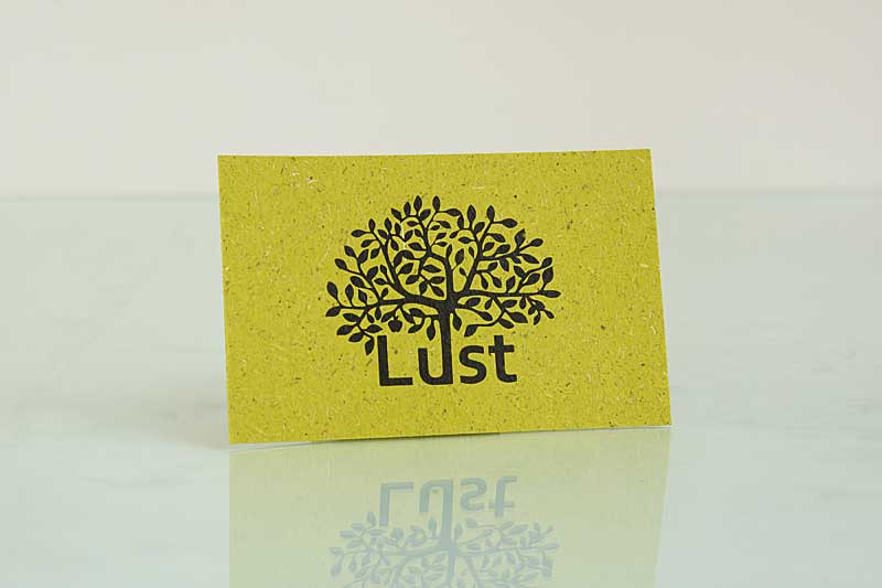 Visitekaartje van Lust, gedrukt op Gmund Bio Cycle Chlorophyll, papier gemaakt met grasvezels