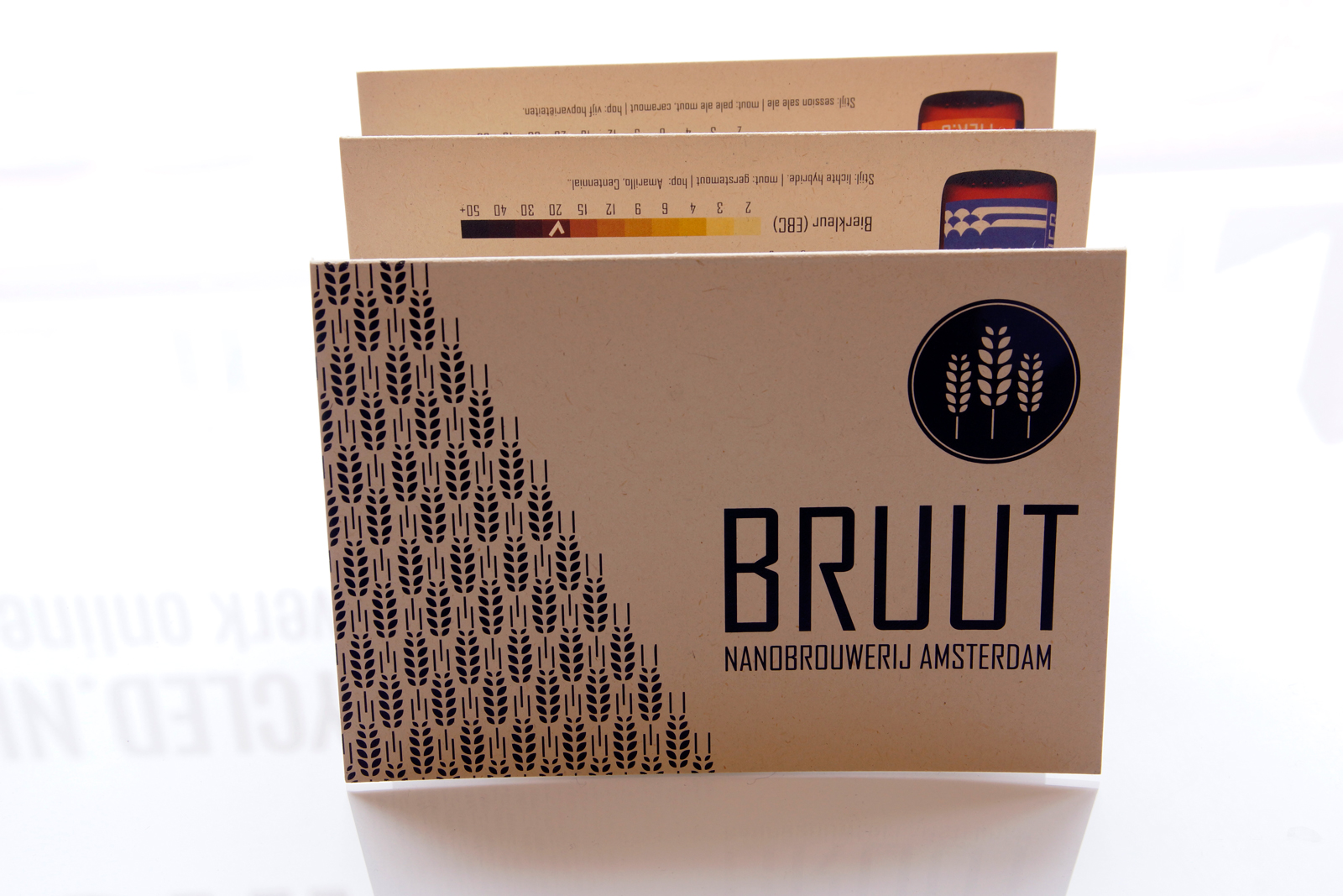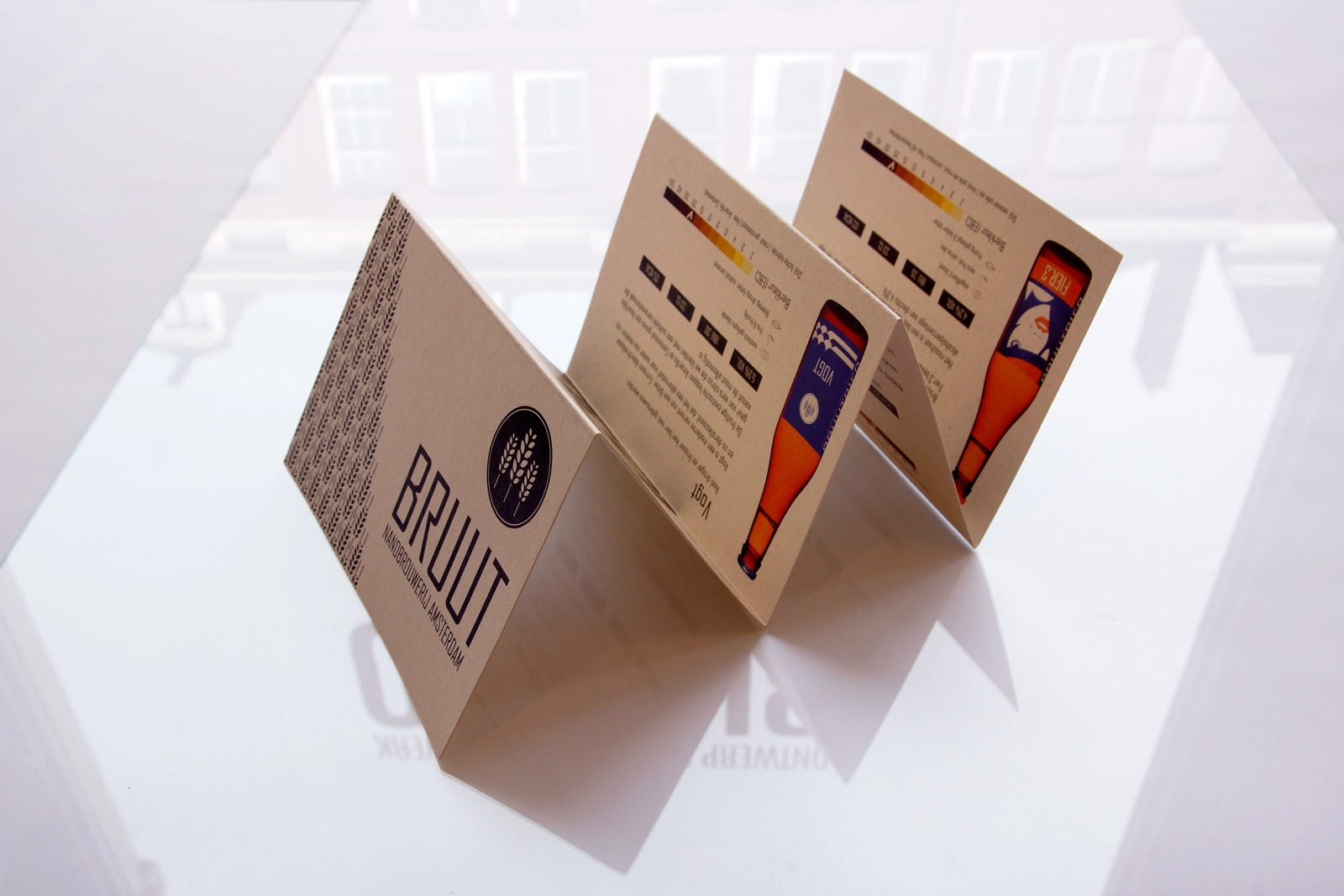 Leporello folder voor Bruut Bier, gedrukt op 285 grams Earth Pact Natural, vervolgens gerild en gevouwen